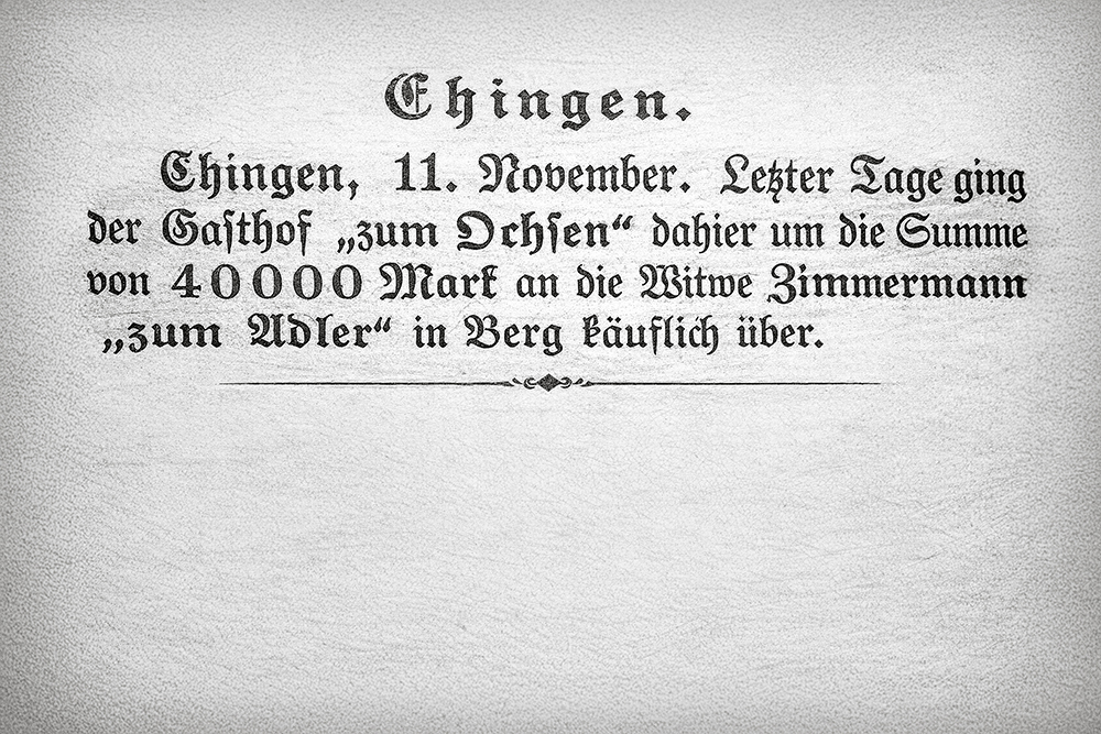 Die Geschichte des Ochsen in Ehingen reicht bis ins 17. Jahrhundert zurück. Vor genau 125 Jahren hat Ursula Zimmermann, die Ururgroßmutter der heutigen Ochsen-Chefin, den Brauereiausschank gekauft. Seither werden die Bierspezialitäten der Berg Brauerei hier frisch gezapft.